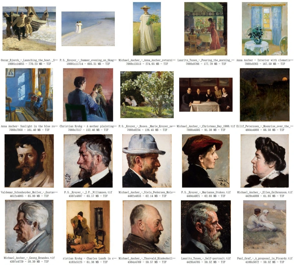 丹麦斯卡恩博物馆高清馆藏作品,人物肖像画为主,P·S·柯罗耶的作品最多。TIF格式图片 84 幅,文件总大小为 5.58 GB(解压后)。